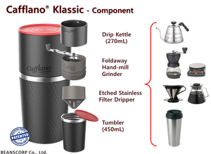 Cafflano introduces the world's first portable pour over coffee brewer with an intuitive epoch-making-all-in-one design. It is an affordable and light weight coffee brewing solution which ensures maximum portability without any hassle of packing. It contains a coffee grinder with foldaway conical burr ceramic hand mill, dripping kettle, dripper; server etched stainless filter and tumbler. All these components are combined to make one assembling unit. You can easily make your fresh hot & cold coffee shot. It is neither battery-operated nor needs electricity, but totally environment-conscious with its permanent etched stainless filter.