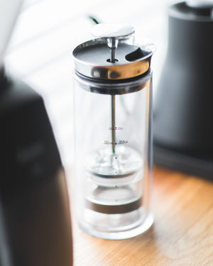 Use the power of pressure and ultra-fine 100-micron steel filtration to rapidly brew a clean and complex cup that's consistent from the first sip to the last. It's all the body without the "mud" of French press, plus a smooth sweetness that will surprise you. Brewed under pressure, the American Press produces an espresso-inspired cup akin to an Americano that's lab tested and proven to be higher in TDS with less sediment than leading steel-filtered coffee presses, and to produce a less bitter and a more balanced, fruitier cup than French press.