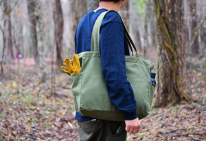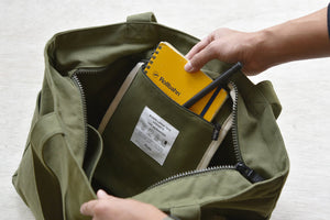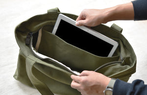 This tote bag is provided with four pockets to solve the problem of the difficulty of finding things within large-capacity tote bags. This keeps the bags from becoming bulky and allows them to be broken-in quickly.