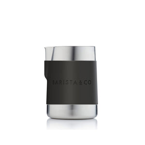 Professional barista has designed this unique hand less Shorty stainless steel milk jug which allows maximum control and balance. This makes it a perfect milk frother for cappuccino, lattes macchiato and flat whites. Tapered Pouring Spout provides accuracy when pouring for milk art or general use and can be used to rest the steam wand on a commercial or home coffee machine.