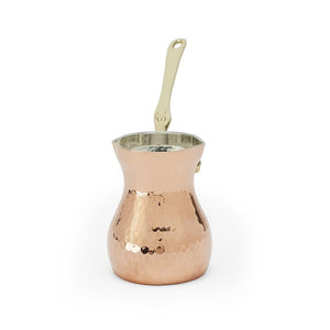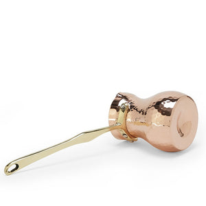 The new STC | Pro ® pots are designed with an original shape and specific sizing. This unique patent pending construction creates ideal natural turbulence without increasing brew agitation leading to a more even extraction. Manufactured from hand hammered 1.5mm thick copper ensure a durable product with ideal heat control during brewing. The ergonomic handle allows for ease of pouring and balance. Designed to accommodate most common cup sizes for Cezve / Ibrik / Turkish coffee, the double spouts accommodate right or left handed pouring.