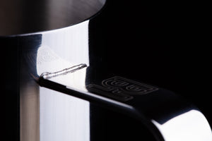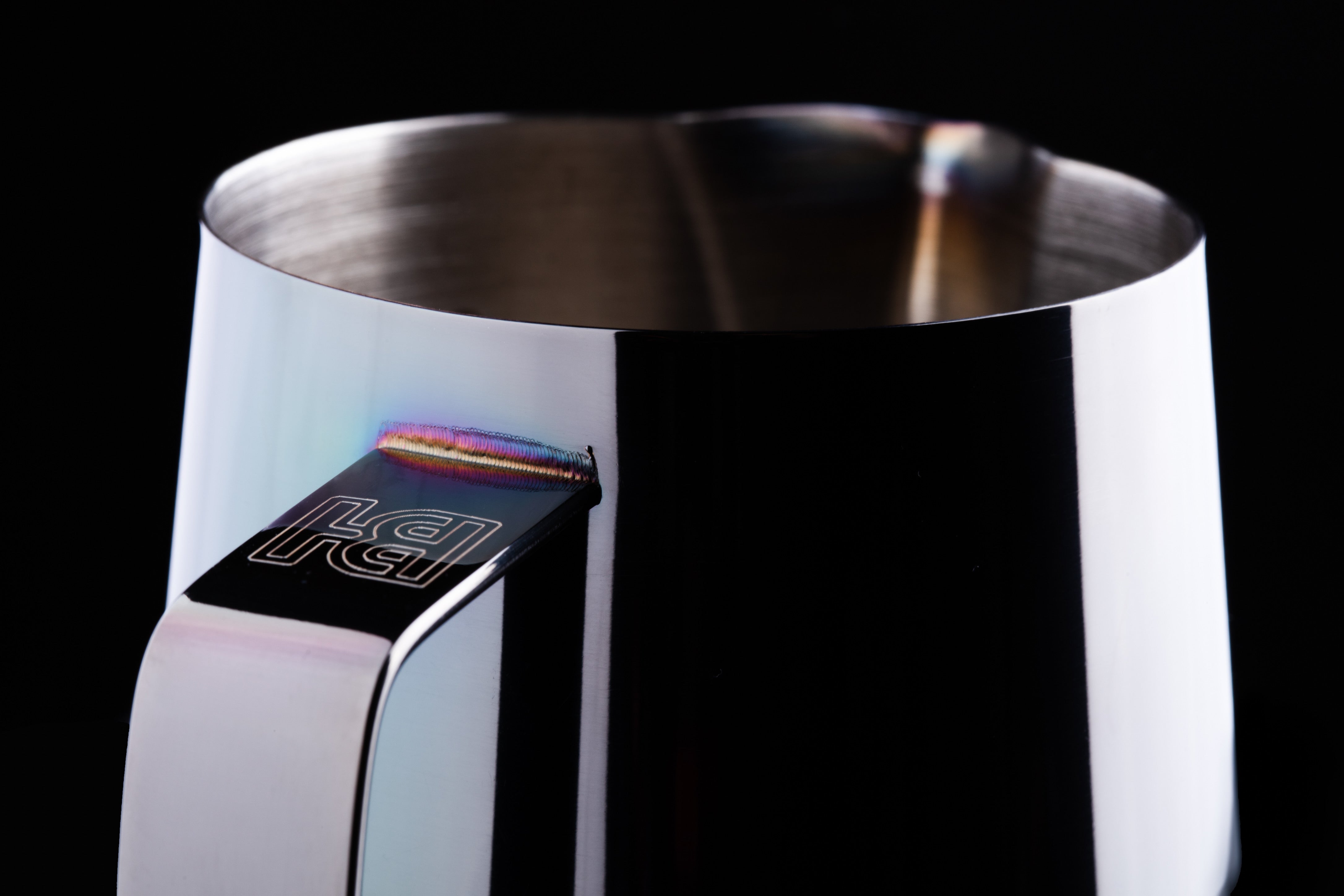 Straight:intense lengths to make this pitcher dead straight. The spout is straight, the handle is straight, and it all comes together to help you pour perfectly symmetrical latte art. Alignment is within a tolerance of 1mm - this a spun and pressed steel part which presents many challenges in production.