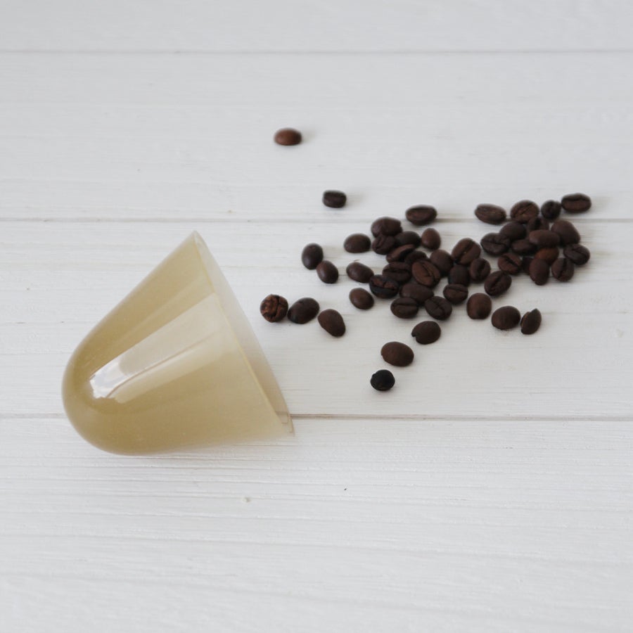 The canister is designed for storing the coffee bean for about a week. The silicone cup can be used to measure coffee beans in the quantities of 10g/20g/30g, and it can adapt the glass jar perfectly in order to maintain the dry environment inside the canister.