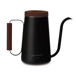 The H.A.N.D kettle is designed for making drip coffee. The thin spout is not only elegant but also enables water to flow slowly and predictably throughout the kettle even with small amount of water. Holding up to 800 ml of water, it meets the needs of both beginners and professional baristas. The angle wooden handle creates warm and stable feeling and the quality black finishing gives the kettle a delightful and eye-catching look.