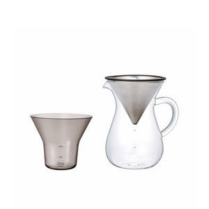 Kinto brings to you a new experience of slow coffee style carafe to brew a perfect coffee shot every single time. The jug contains measurement scale to let you measure the perfect amount of water for your coffee experience. You can opt for two types of filters, the stainless steel filter or the plastic brewer. The stainless steel filter helps you extract the coffee oil for a rich and aromatic coffee brewing. The plastic brewer used with paper filters brings out a clear, mild taste. You can measure the amount of coffee with the holder and you can place a filter on it after use. All the components are stackable which can be stored in a small place.