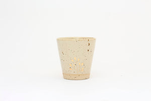 • Material: creme speckled stoneware, satin matte lead-free glaze