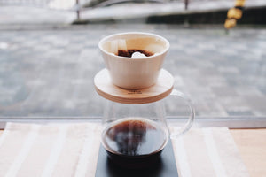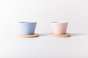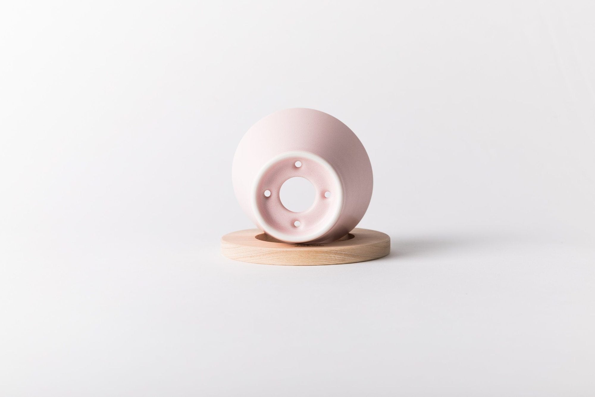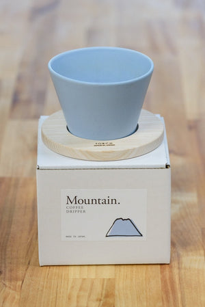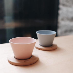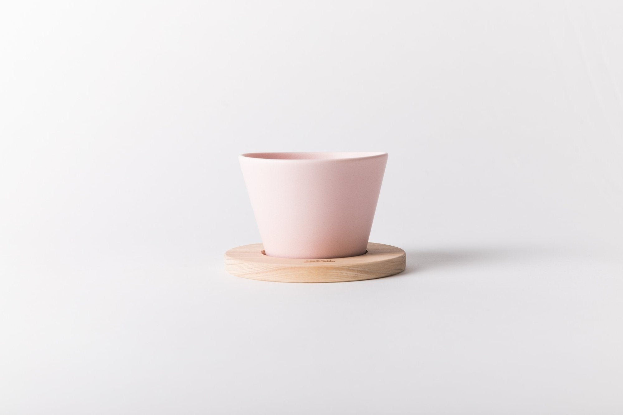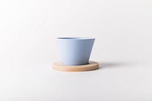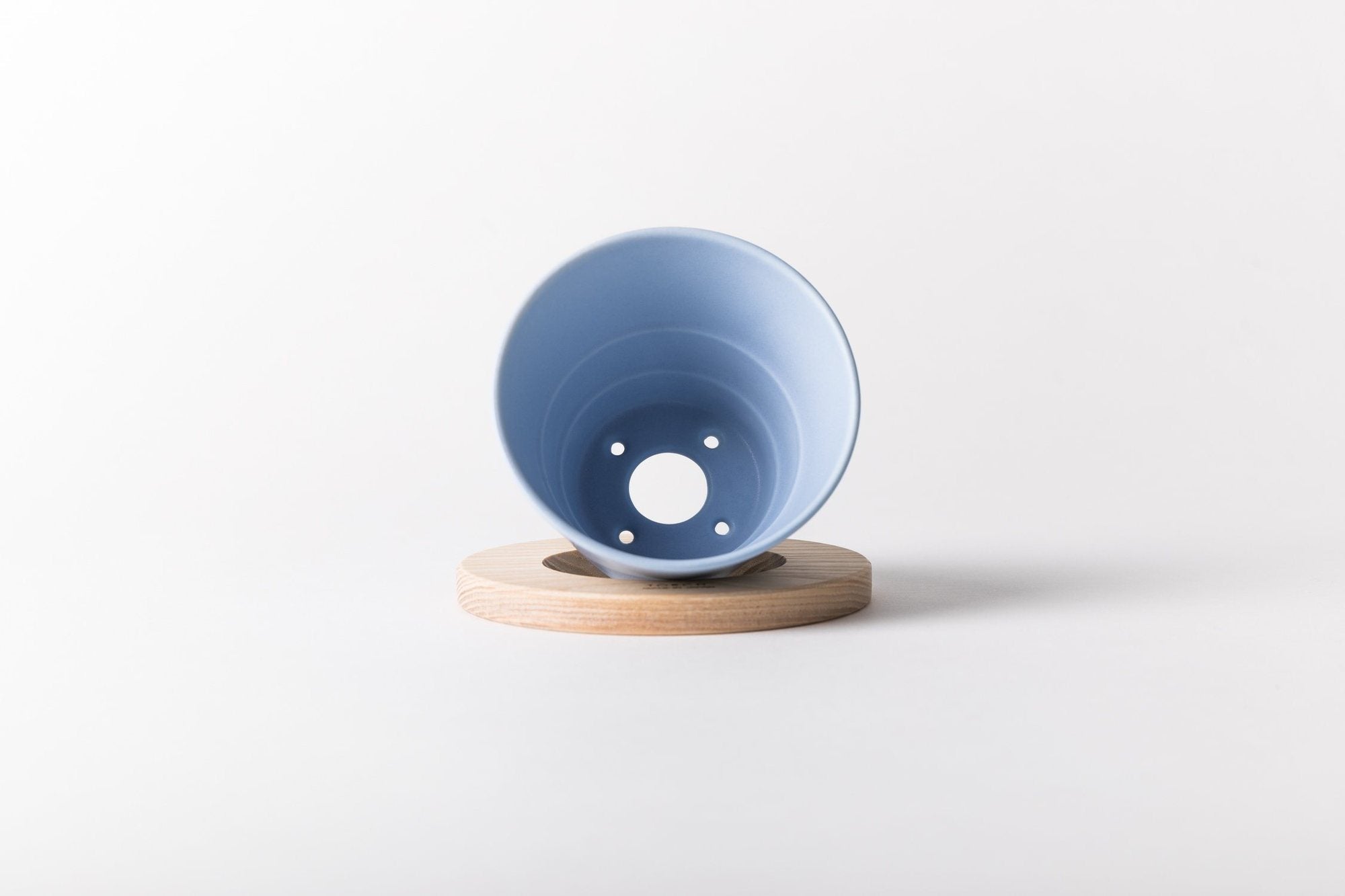 Each Torch dripper set features an exquisite white Japanese Mino Yaki style porcelain dripper with an untreated, white ash base. Over time the attractive wooden base gains additional character from the natural patterns and staining of regular use.